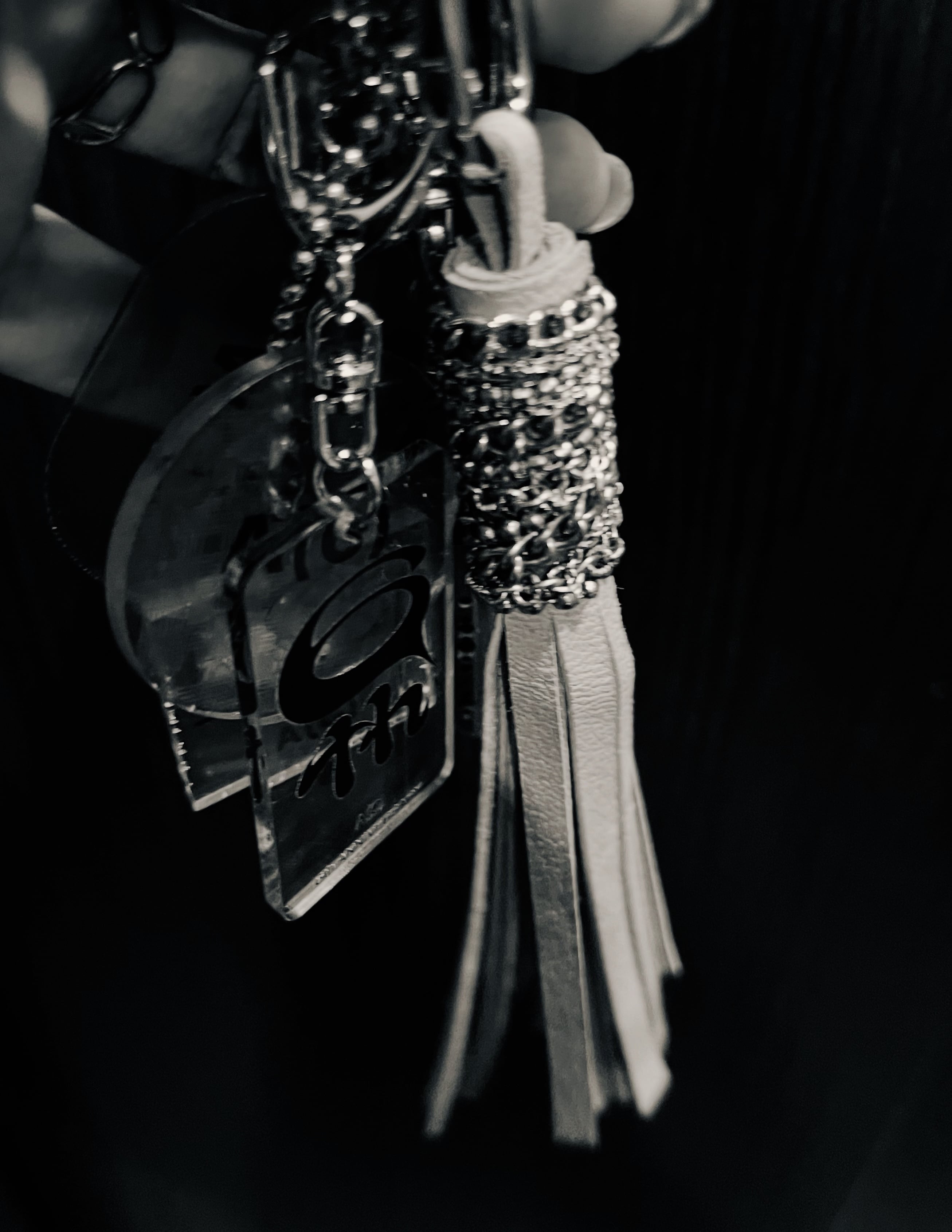 本革のタッセルとチェーンを合わせたオリジナルタッセルキーリング。