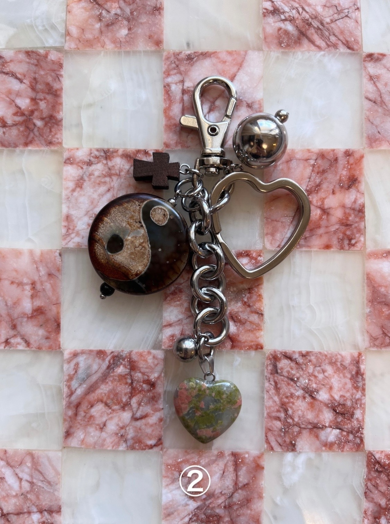 天然石瑪瑙のyin yangチャームはそれぞれ色やデザインは少しづつ違います。
