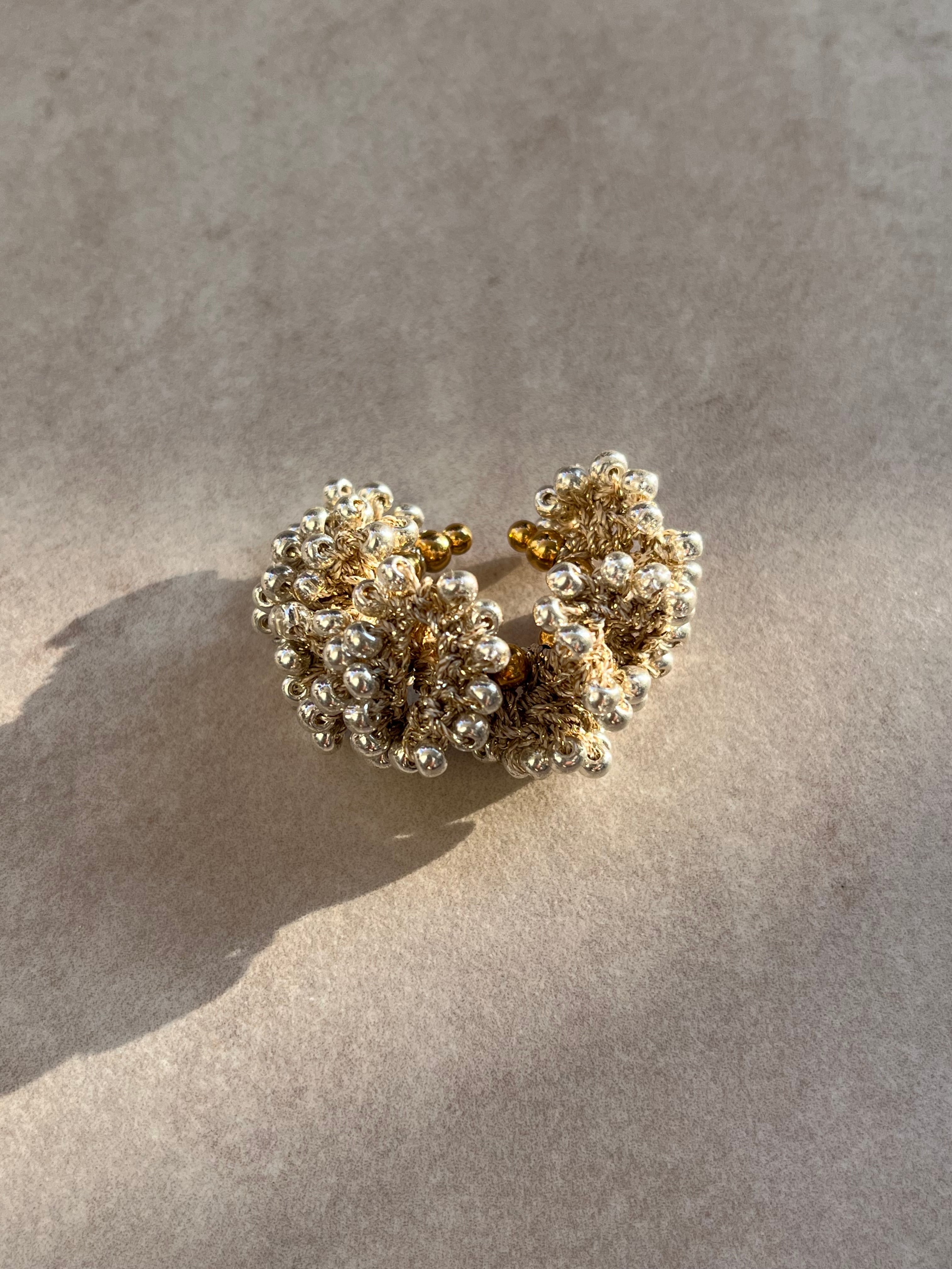 糸とビーズを組み合わせたボリューム感のあるear cuff。