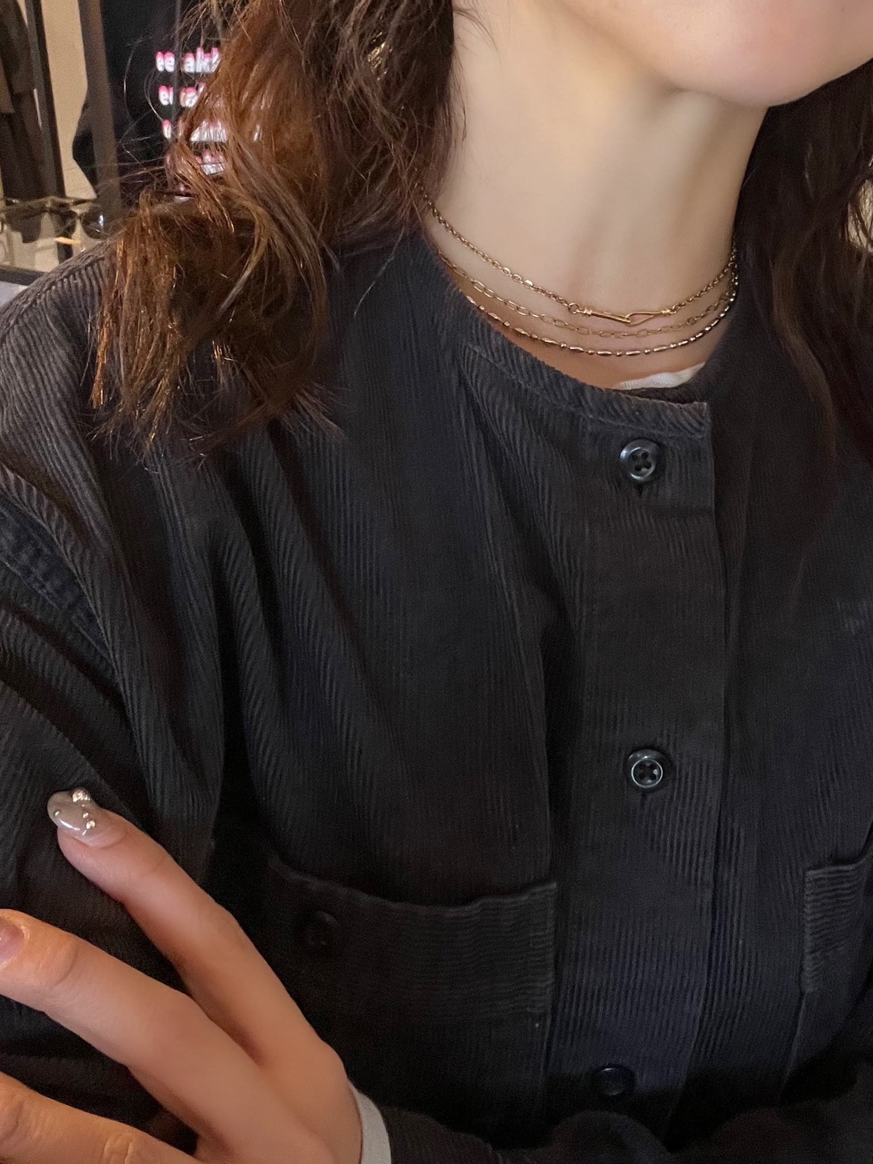 短めなのでセーターなどにも入り込まずつけられます。