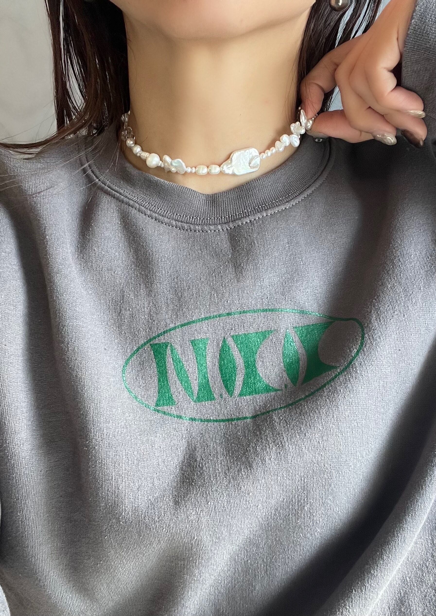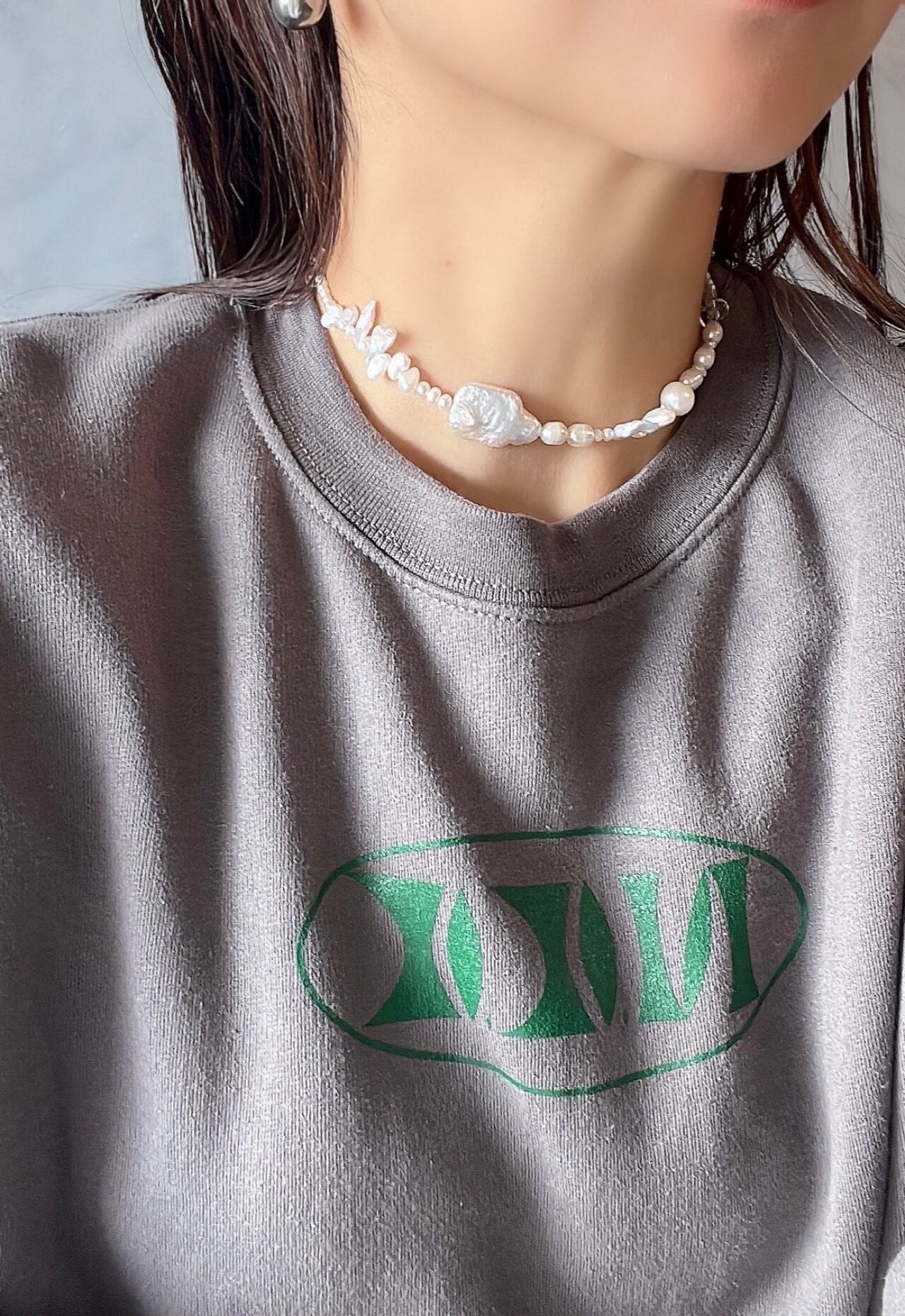 色々な形の淡水パールを並べてつける場所によって表情が変わるネックレス。
