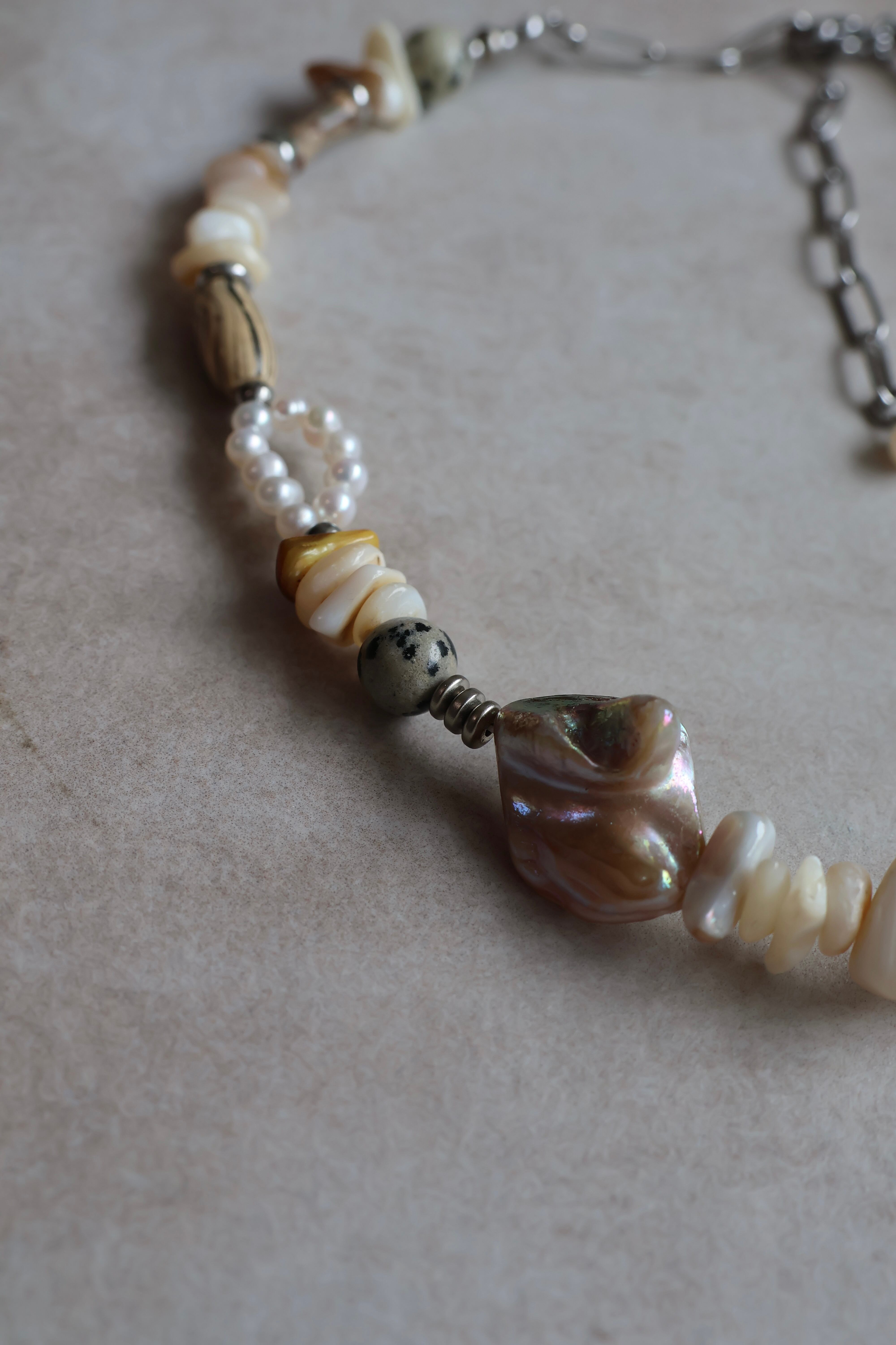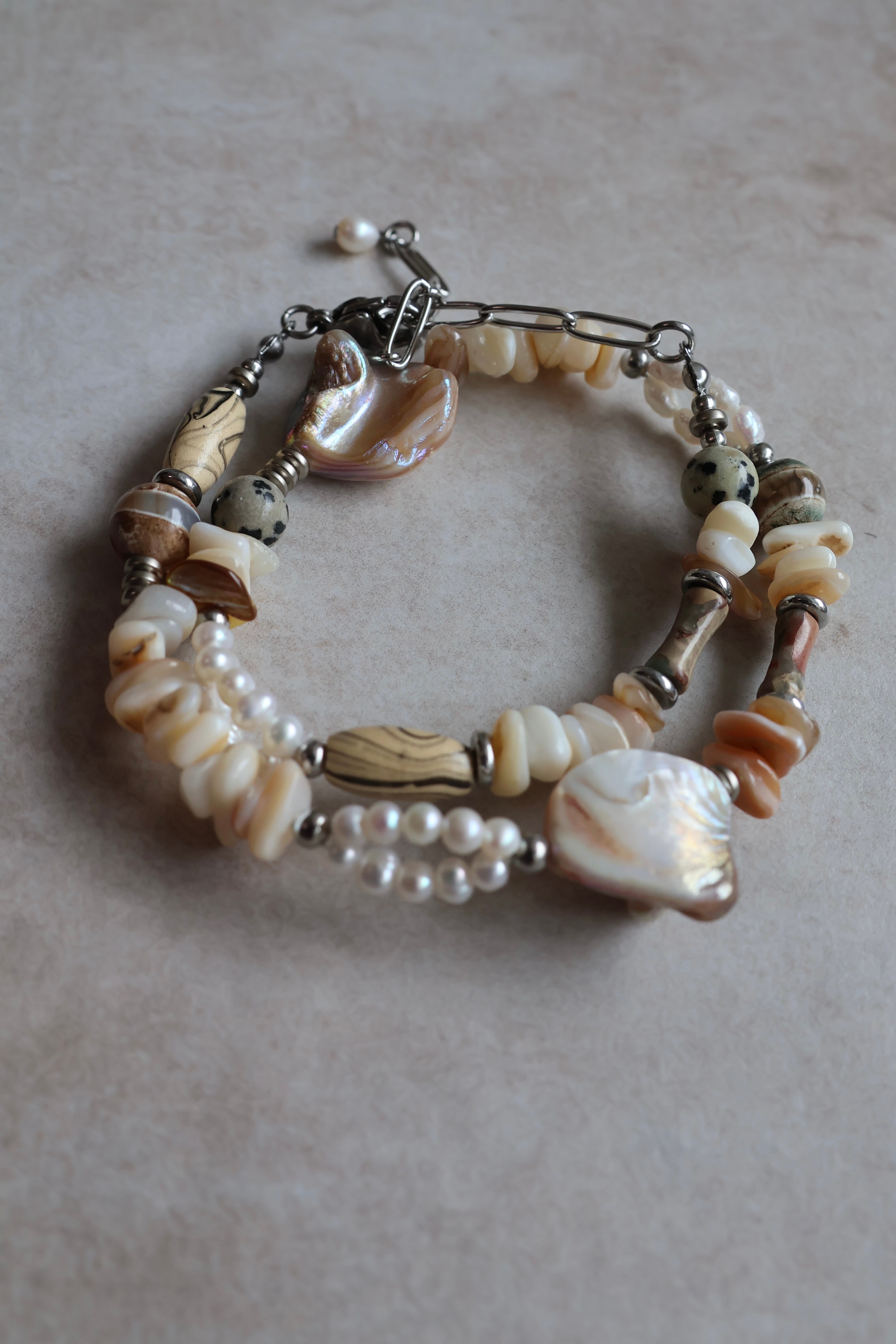 ◯素材:淡水パール、シェル、ウッドビーズ、その他ステンレス製