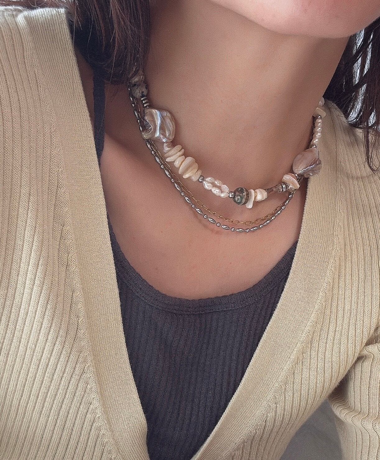 ゴツメのネックレスですがベージュカラーでどんなお洋服にも合わせやすくワンポイントにピッタリ☆