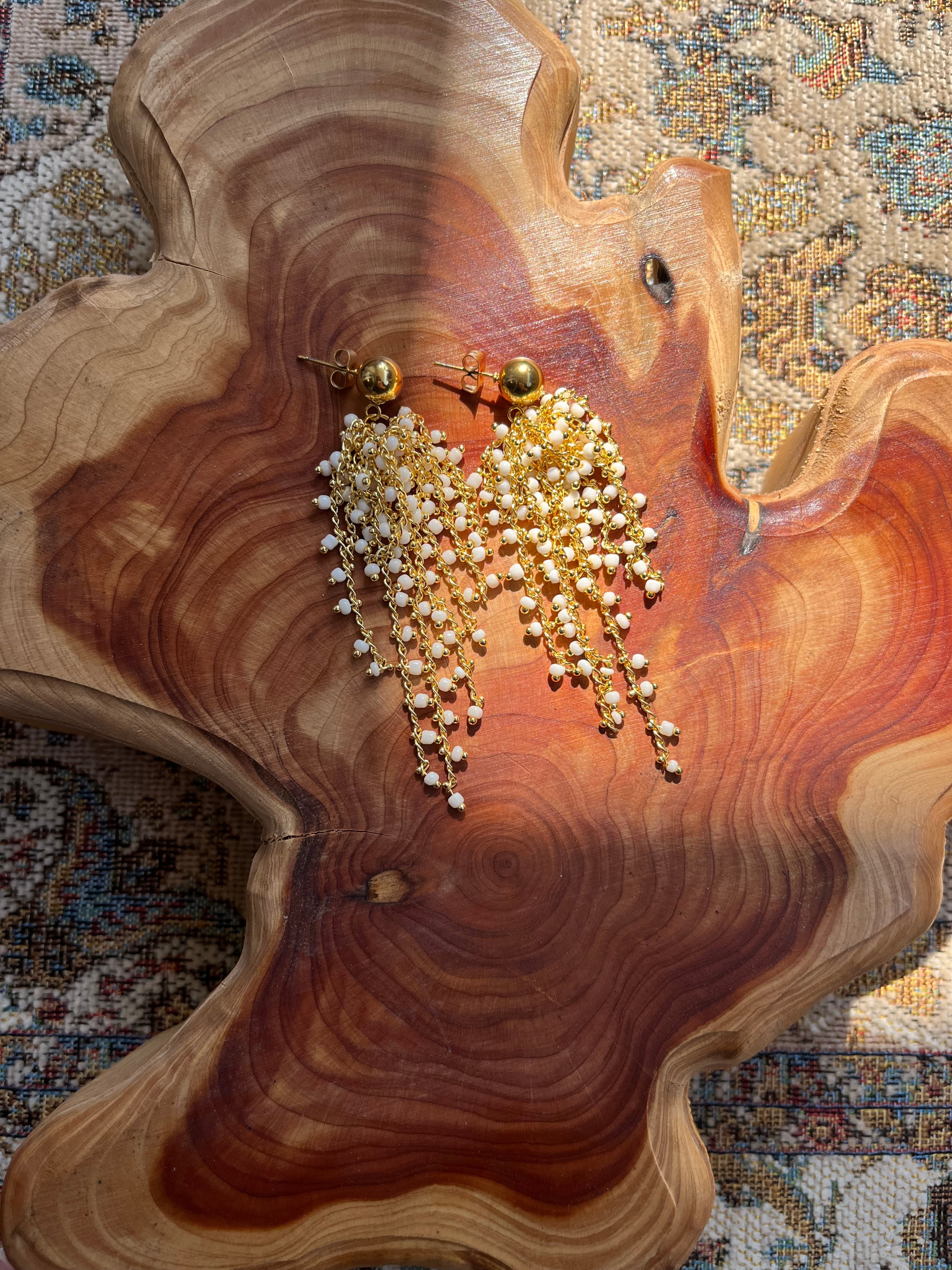 ラフなスタイルにも活躍しそうなじゃらじゃらビーズピアス♡