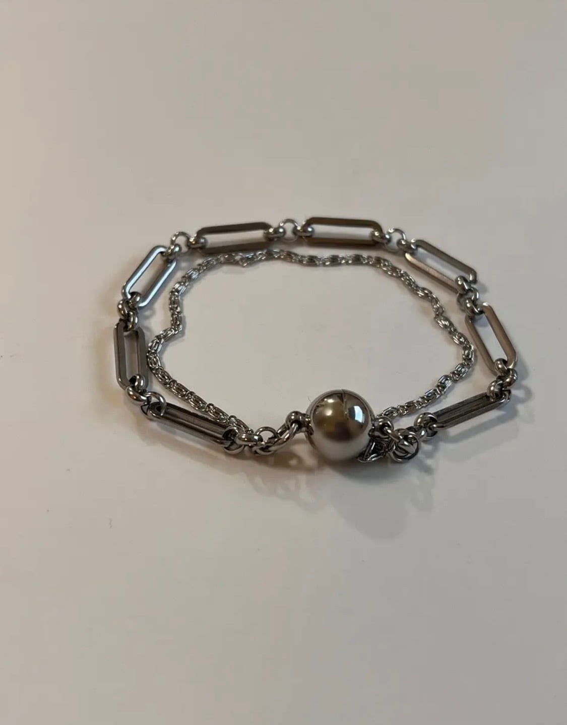 カタツムリのような形のチェーンがレトロで可愛い2連タイプのブレスレット♪