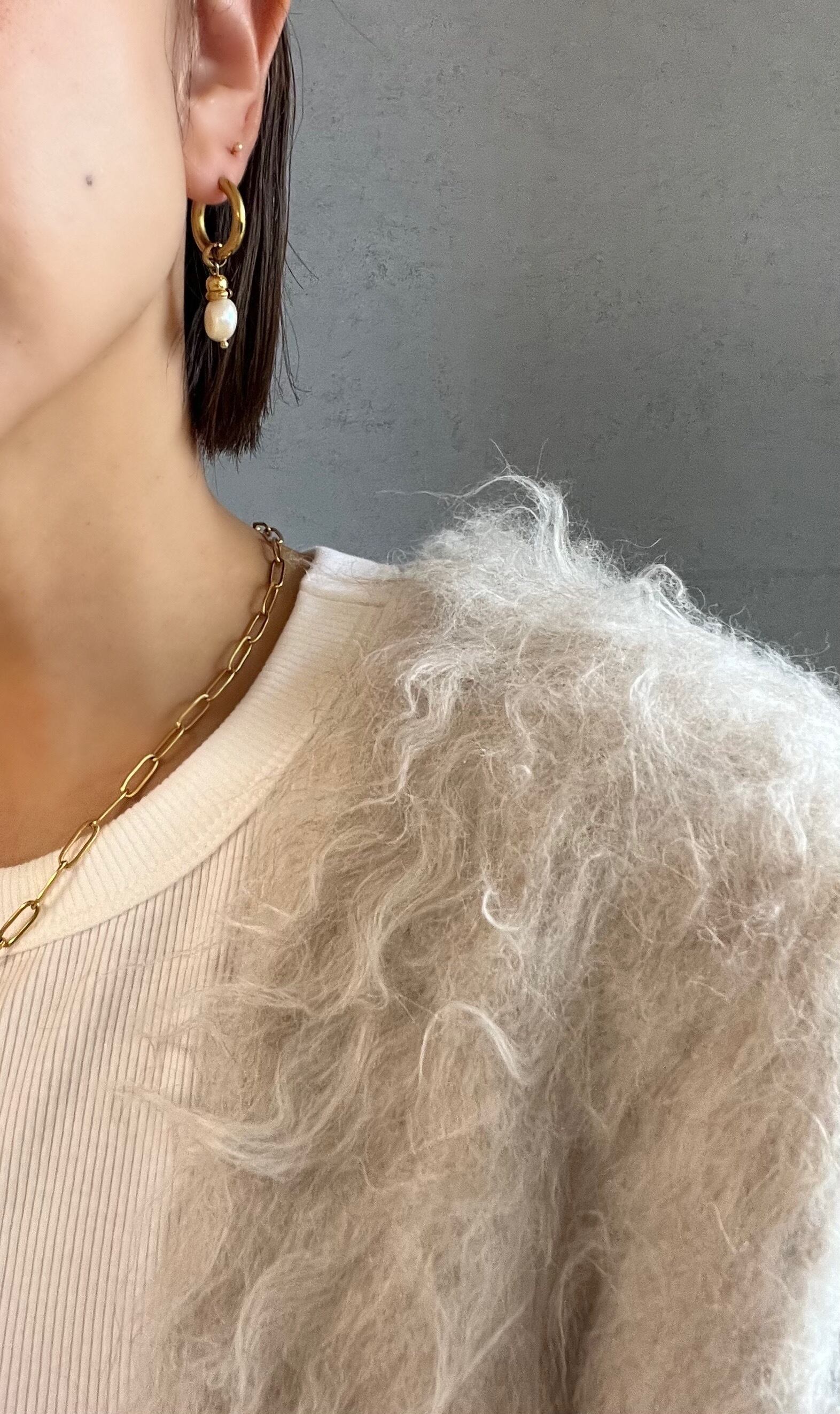 淡水パールのチャームをフープピアスから外し、細めのネックレスに通して頂くとパールネックレスのチャームにもなります♡