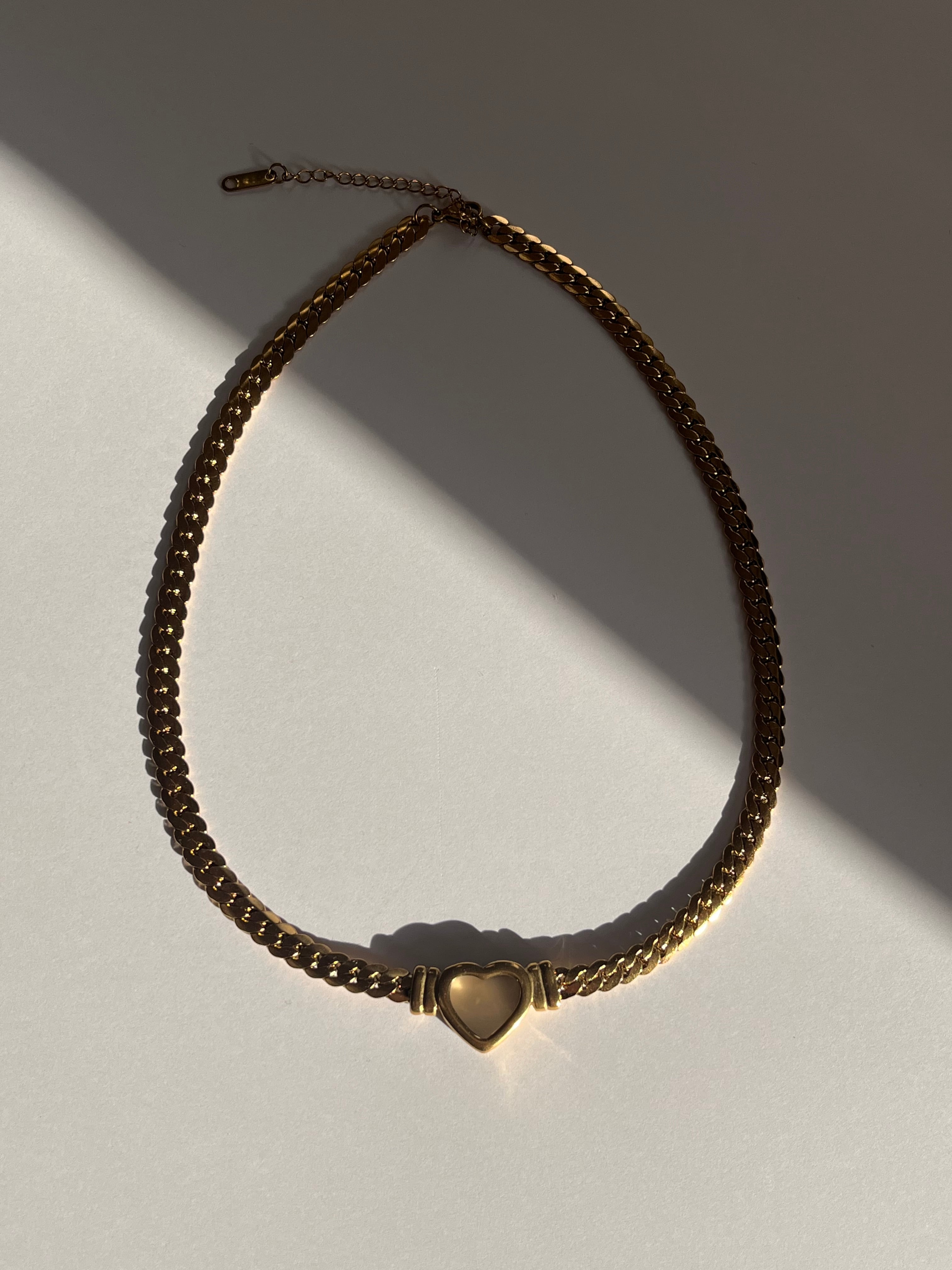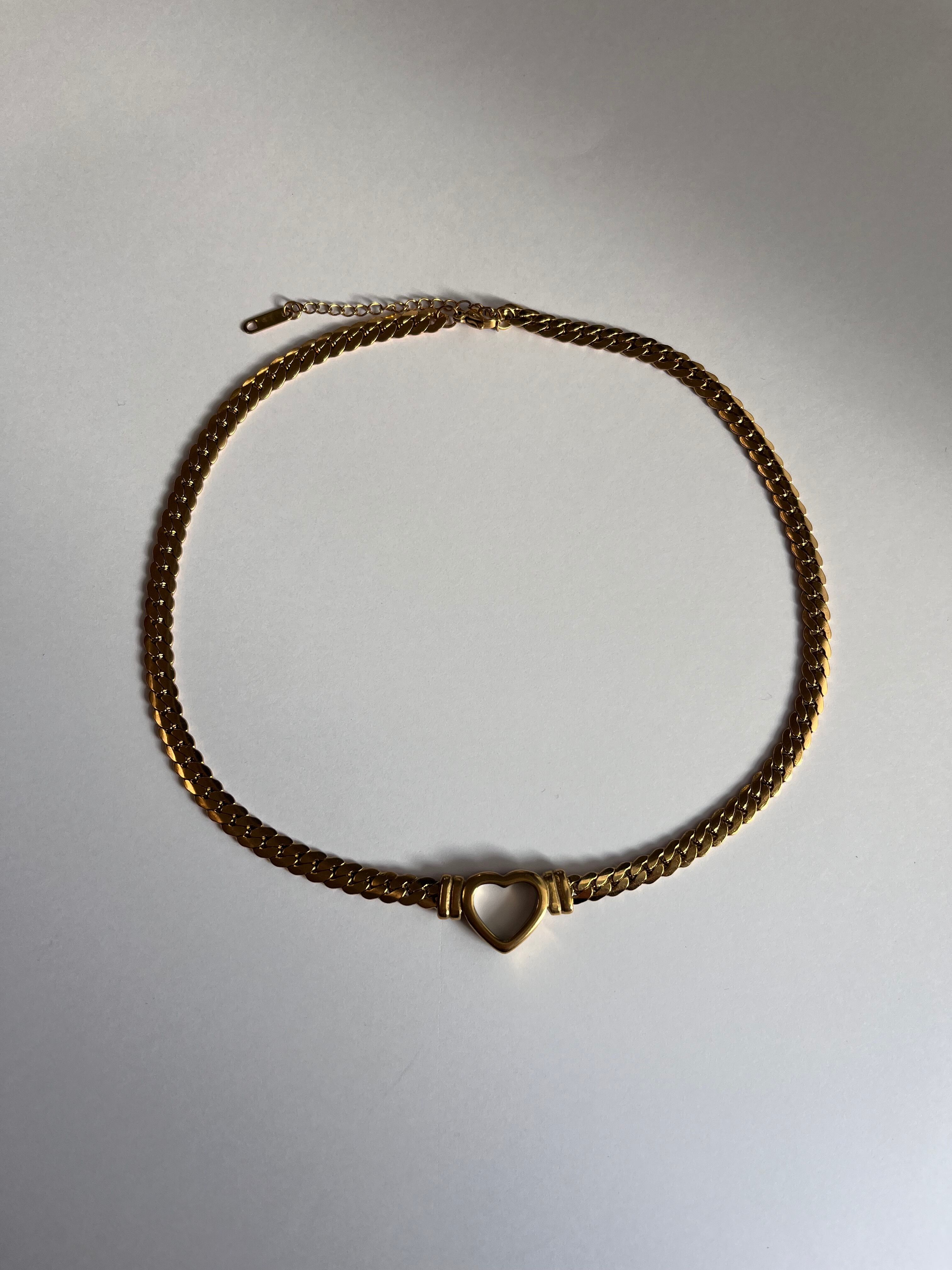 可愛いハートチャームと格好良いチェーンの組み合わせで可愛くなりすぎず、大人でも着けやすいチョーカー&ネックレス。アジャスター付きで少し長めにも着けられます。