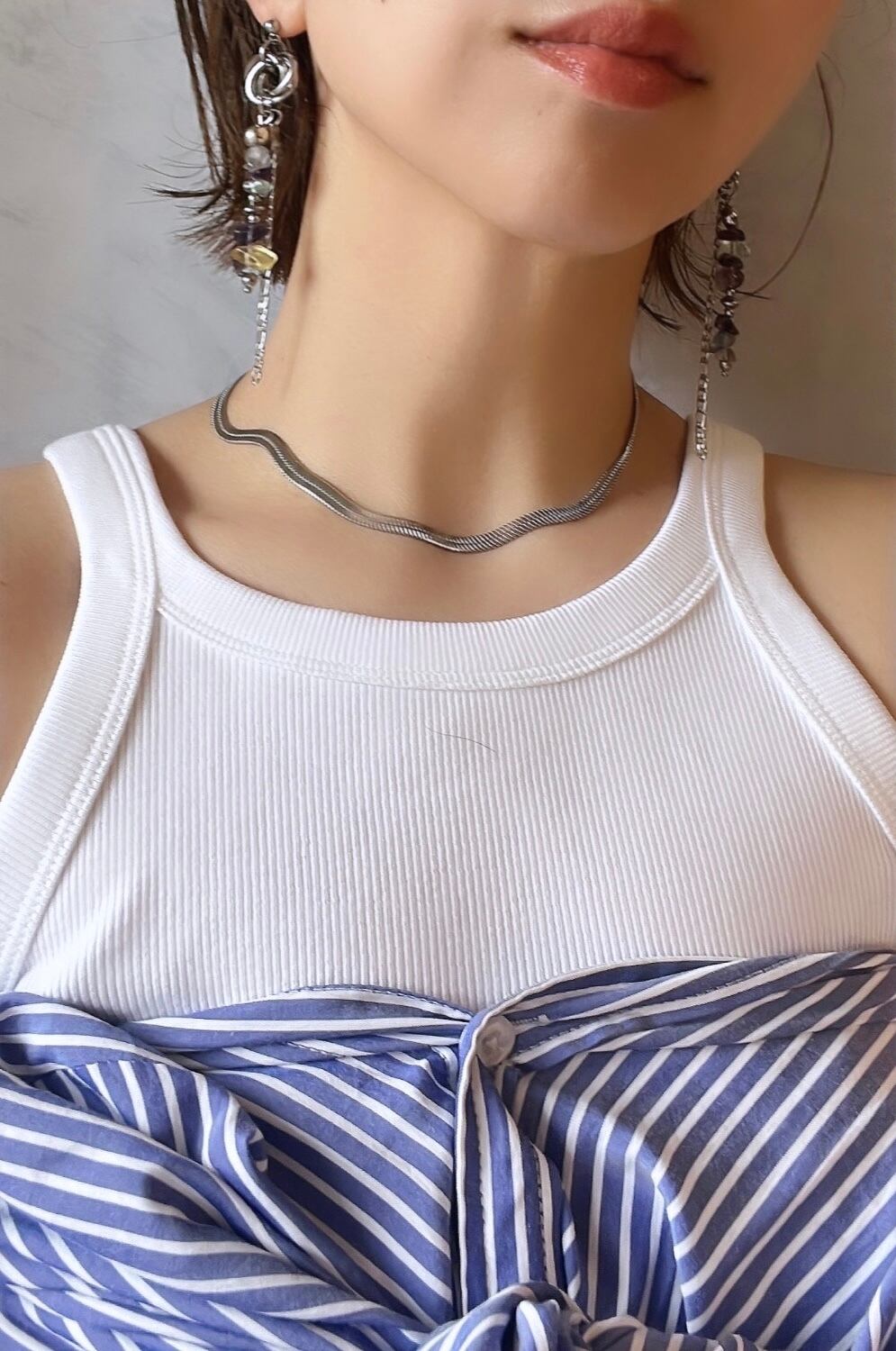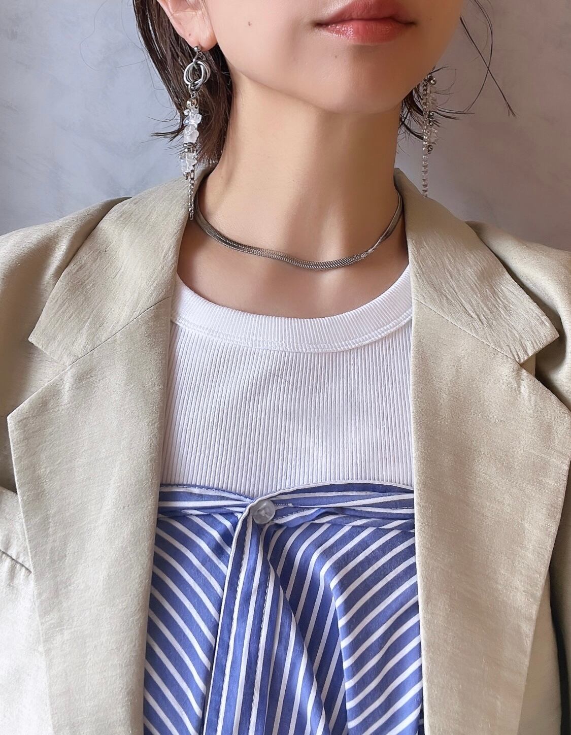 長めのチェーンと組み合わせることで大人っぽく、動くたびに揺れて女性らしさもアップさせてくれます。
